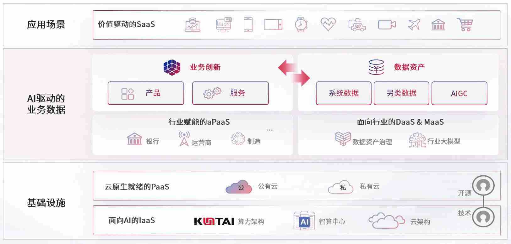 数字时代,,,,围绕企业数字化转型的关键要素,,,来利国际旗舰厅数码开创性的提出数云融合战略和技术体系框架,,着力在云原生、、、数字原生、、AI原生和信创产业上架构产品和服务能力,,,,为处在不同数字化转型阶段的快消零售、、、、汽车、、、、金融、、医疗、、、、政企、、、、教育、、运营商等行业客户提供泛在的敏捷IT能力和融合的数据驱动能力,,,,构建跨界融合创新的数字业务场景和新业务模式,,,,助力企业级客户建立面向未来的核心能力和竞争优势,,全面推动社会的数字化、、智能化转型升级。。。